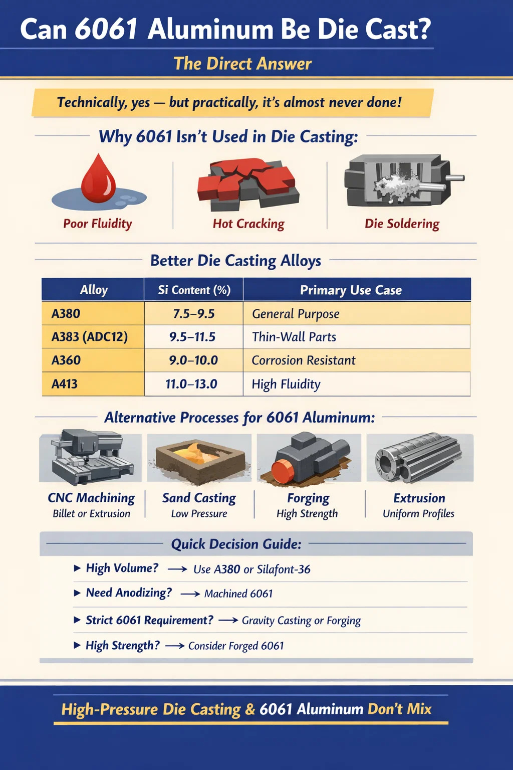 Aluminiul 6061 poate fi turnat sub presiune? Răspunsul direct