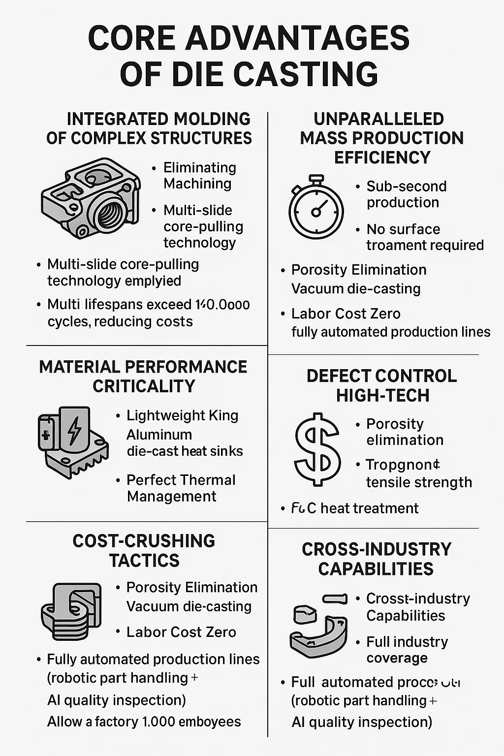 Timpuri de ciclu de modelare cu o singură parte de 10-60 secunde (până la 30 de părți pe minut pentru piese din aliaj de zinc), cu o capacitate de producție de 24/7 de 10.000 de părți.