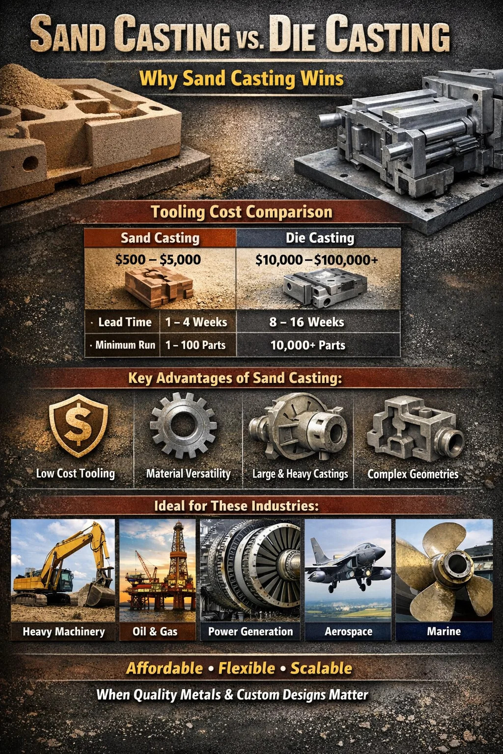 Răspunsul scurt: turnarea cu nisip câștigă în funcție de cost, flexibilitate și amploare